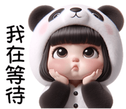 可愛的穿熊貓裝女孩
